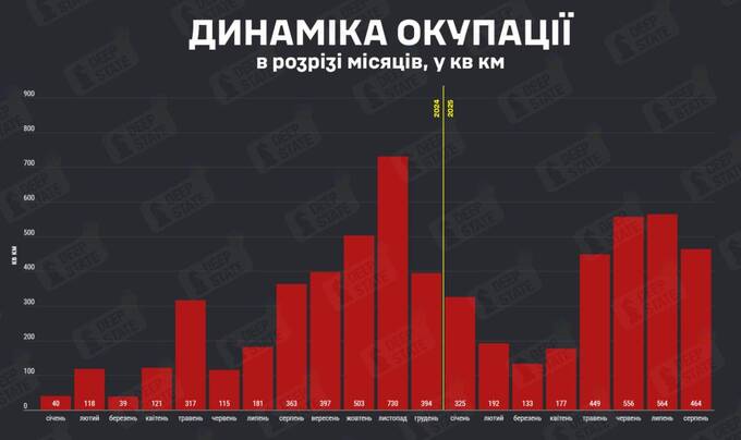 В августе армия РФ проявила меньшую активность в наступательных действиях по сравнению с июлем, июнем и маем, осуществив около 5027 штурмовых операций, сообщает DeepState.