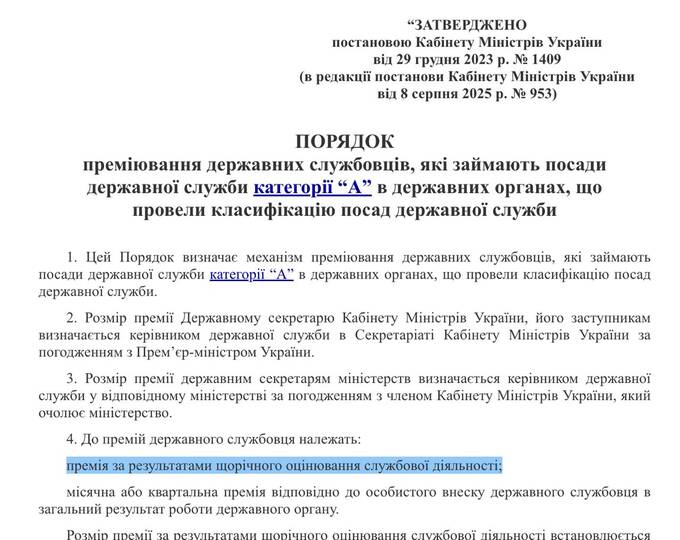 Украинские государственные служащие будут получать еще один вид премий — ежегодные.