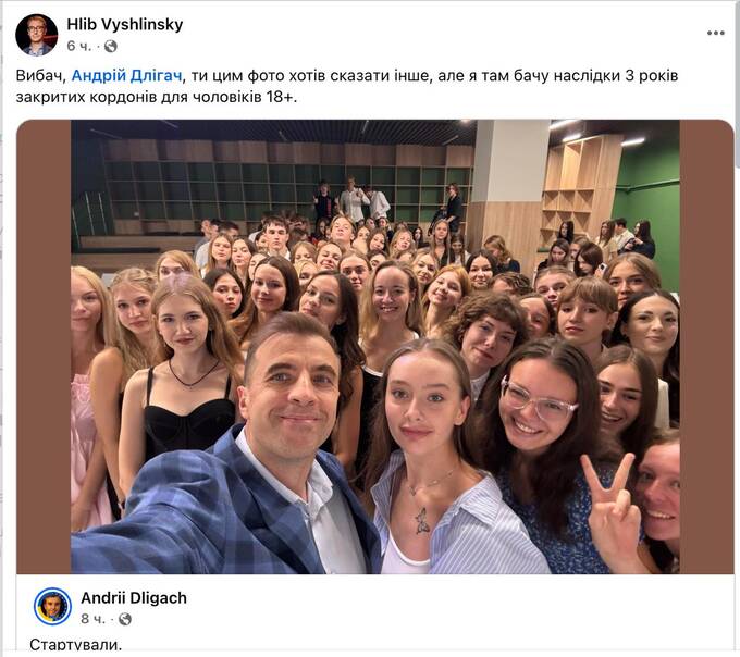 Андрей Длигач, преподаватель экономического факультета Киевского национального университета имени Шевченко, разместил фото первого курса, на котором заметно, что большинство студентов - девушки.
