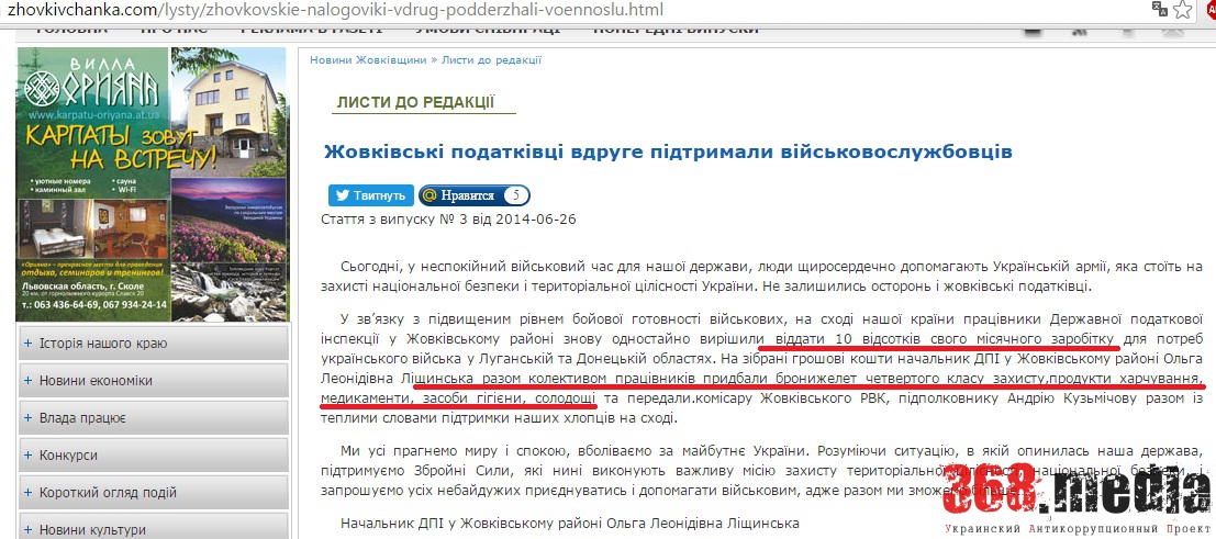 Налоговик Ольга Лищинская задекларировала достаточно скромные доходы. В прошлом году на посту начальника Жолковской налоговой службы она заработала всего 49,3 тыс. гривен. Еще 16 тыс. гривен она получила от бывшего супруга в виде алиментов для содержания двух сыновей. Также государство предоставило ей 1,7 тыс. гривен матпомощи. На содержание имущества в прошлом году налоговик потратила 10,8 тыс. гривен. Кроме того, она погасила кредит на более чем 14 тыс. гривен. Несмотря на скромную зарплату и долговые обязательства, женщина умудрилась отдать 10% своей месячной зарплаты на нужды воинов АТО.
