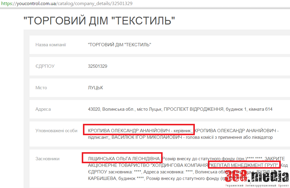 Журналисты связывают Кропиву с захватом и доведения до банкротства текстильных предприятий в Луцке и Херсоне. Подробнее об этих аферах можно прочитать здесь.