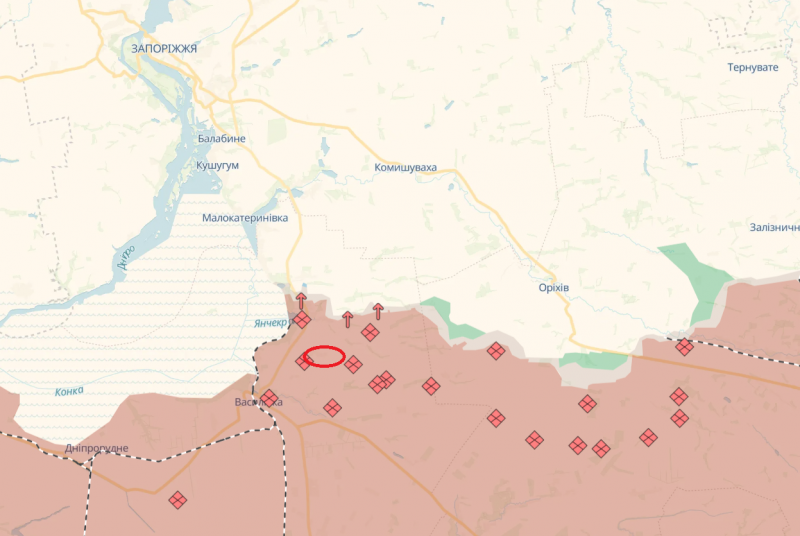Также защитники уточнили, что удар по оккупантам произошел неподалеку от населенного пункта Луговое в Запорожской области. Ниже на карте можно увидеть, где находится это село.