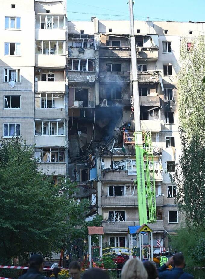 Во время ночного обстрела Киева разрушена часть многоэтажки