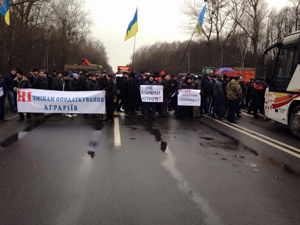 З 9:00 аграрії та сільгосптехніка заблокували трасу Київ-Одеса. До мітингу приєдналися аграрії Миколаївської, Тернопольської, Київської областей.