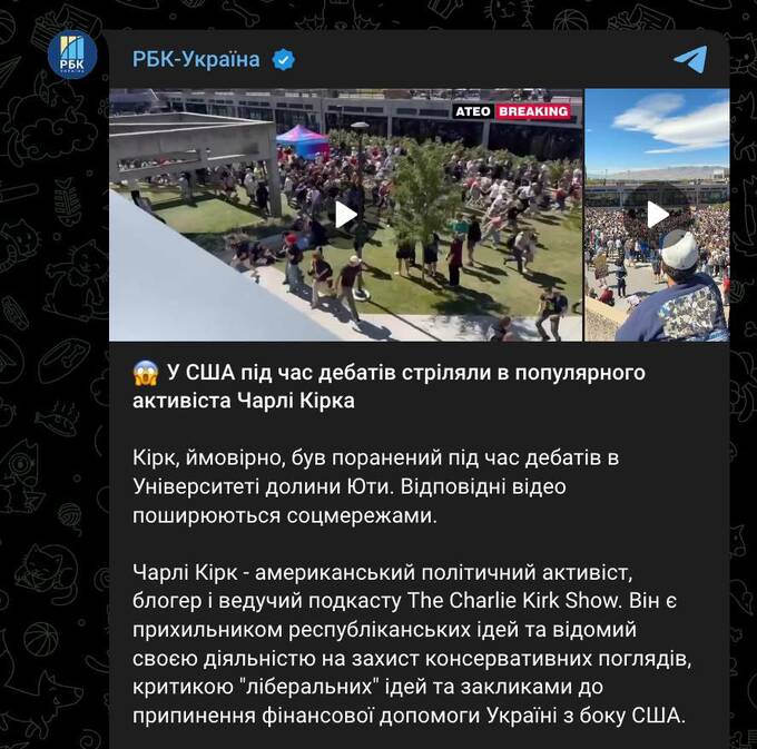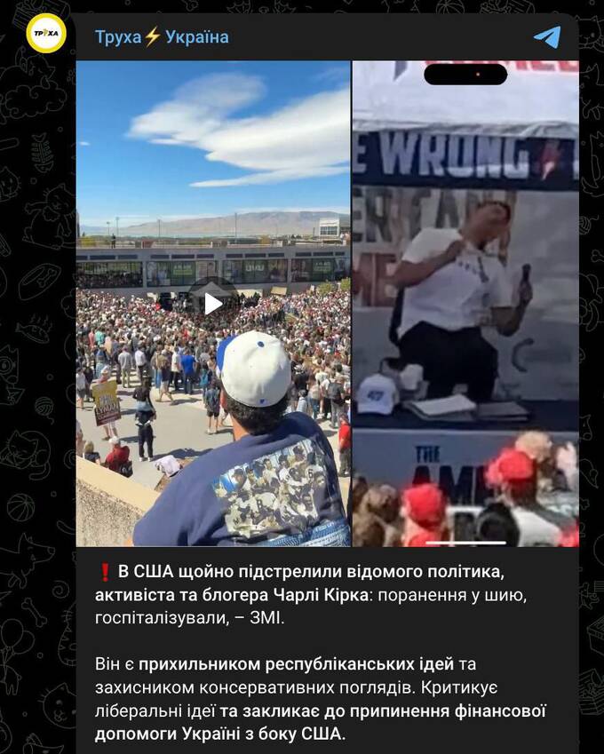 Украинские паблики и СМИ, освещая сегодняшнее покушение на Кирка, также отметили его «антиукраинские» высказывания.