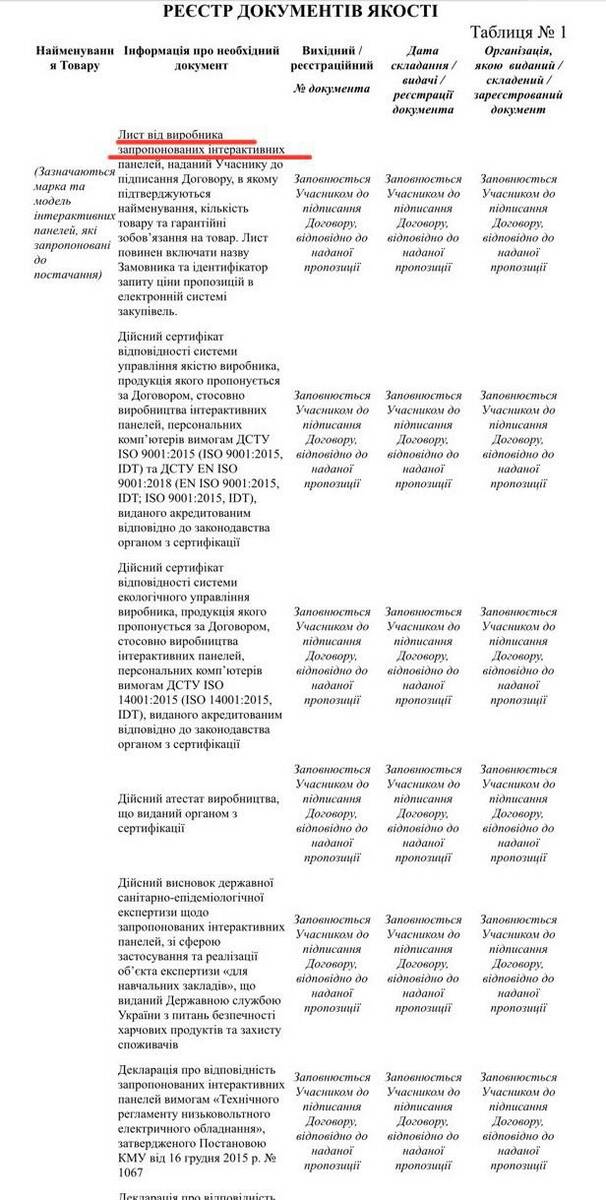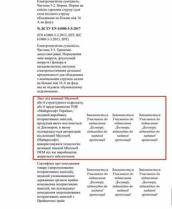 Как и в предыдущих закупках интерактивных панелей, в тендерной документации вновь появились требования, которые не предусмотрены законом. Среди них: