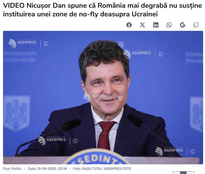 Румыния, вероятно, не поддерживает установление бесполетной зоны над Украиной, так как это может означать участие в военном конфликте с Россией, однако эта позиция может быть пересмотрена в дальнейшем.