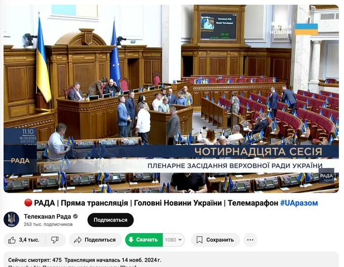 Впервые с начала войны "Рада" снова транслирует работу парламента
