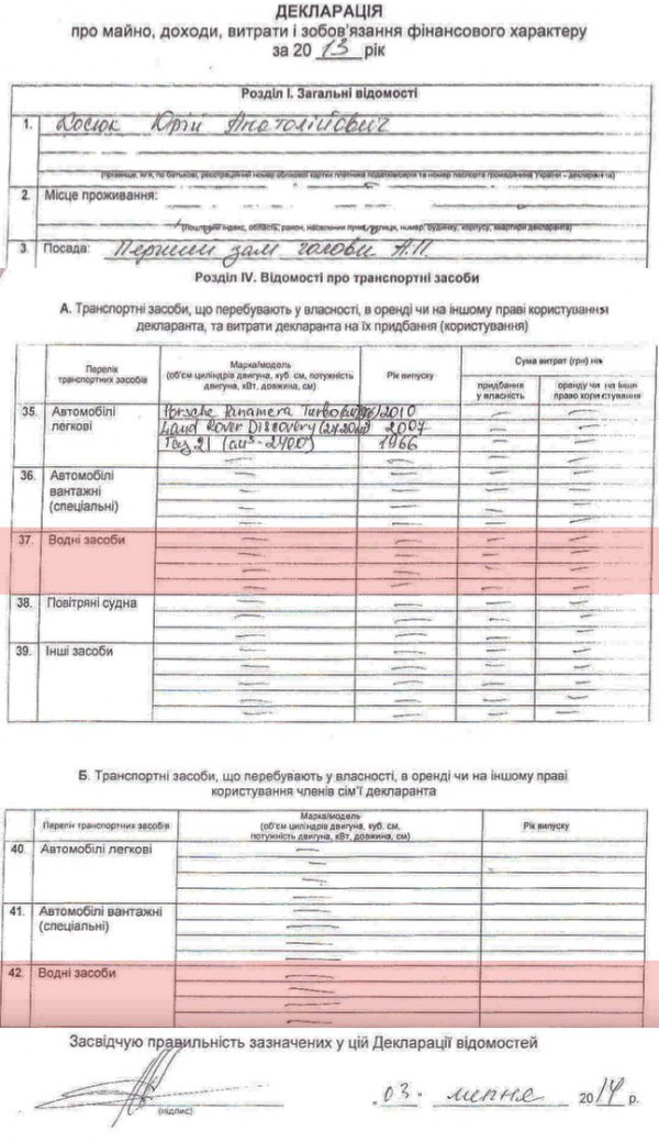 Протягом свого нетривалого перебування на державній службі Косюк був змушений заповнити декларацію про майно. Дива не сталося – в ній немає жодного слова ні про його морський палац Ace, ні про допоміжну яхту Garçon. Майно вартістю понад 200 мільйонів доларів залишилося непоміченим... Зате в інших документах – податковому кодексі та бюджеті України – є гарантований пільговий режим для сільгоспвиробників. Яких фактично дотують інші платники податків.