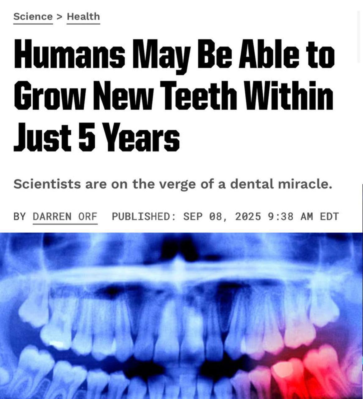 Если все будет успешно, до 2030 года люди смогут выращивать зубы с эмалью и нервами — без визитов к стоматологу.