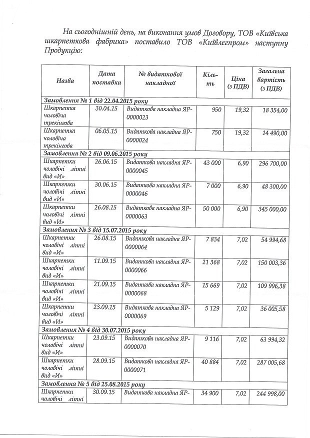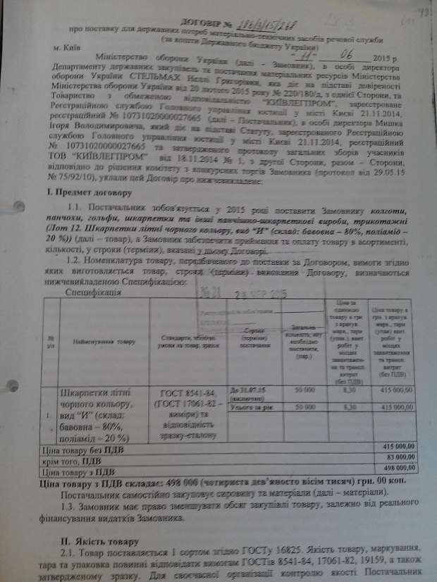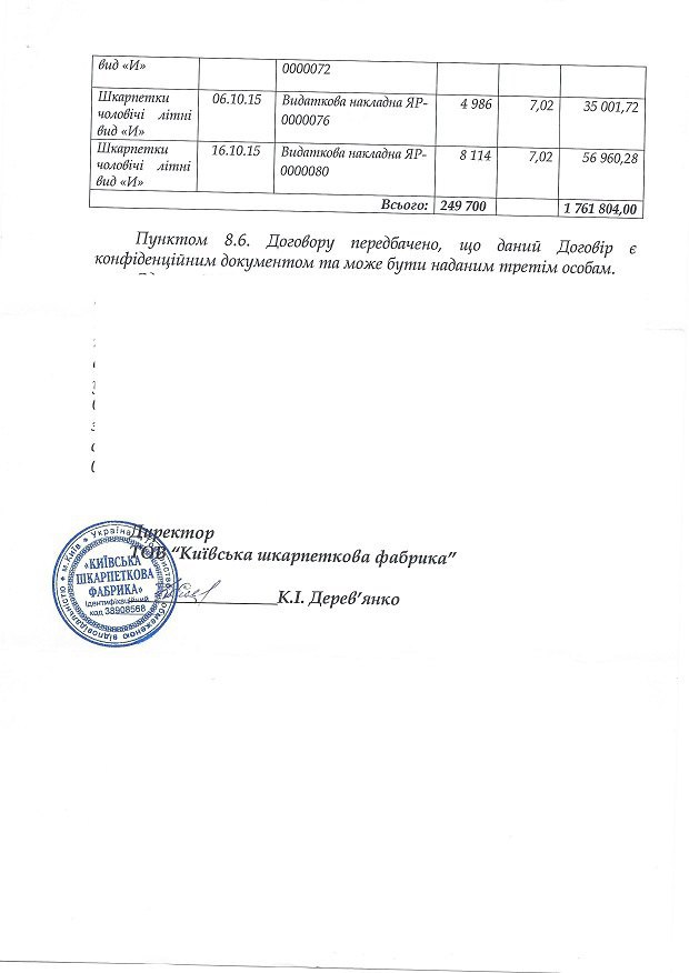 З‘ясувалося, що дійсно для виконання договорів з Міноборони – ТОВ «КиївЛегпром» закупило близько 250 тис. пар шкарпеток у ТОВ «Київська шкарпеткова фабрика» за ціною 1 760 тис. грн. Невідомо де закуповувалися ще 400 тис. пар для Міноборони, проте в разі, якщо вони закуповувалися за аналогічною ціною – ціна партії 650 тисяч пар літніх шкарпеток у безпосередніх виробників склала 4.5 млн. грн.