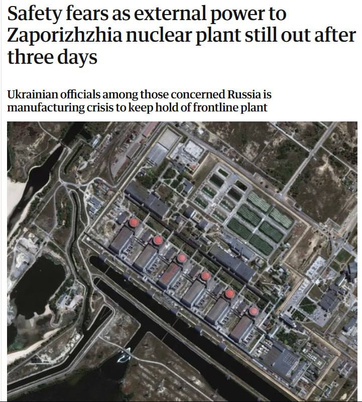 Об этом сообщает The Guardian со ссылкой на экспертов МАГАТЭ. По их данным, внешнее электроснабжение Запорожской АЭС отсутствует уже три дня, а системы охлаждения и безопасности работают на дизельных генераторах из-за отключения последней линии электропередачи.