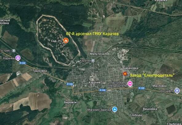 На портале отметили, что на противоположной стороне города Карачев, на северных окраинах, расположен 67 арсенал ГРАУ, или 1046-й центр материально-технического обеспечения ВС РФ. Тем временем завод "Электродеталь", который производит компоненты для российского оружия и, например, дронов "Химера", — на восточной окраине. Ориентировочное расстояние между целями — около 3 км. По мнению аналитиков, арсенал избежал удара, поскольку на нем не хранится большое количество снарядов, что могло бы заинтересовать ВСУ.