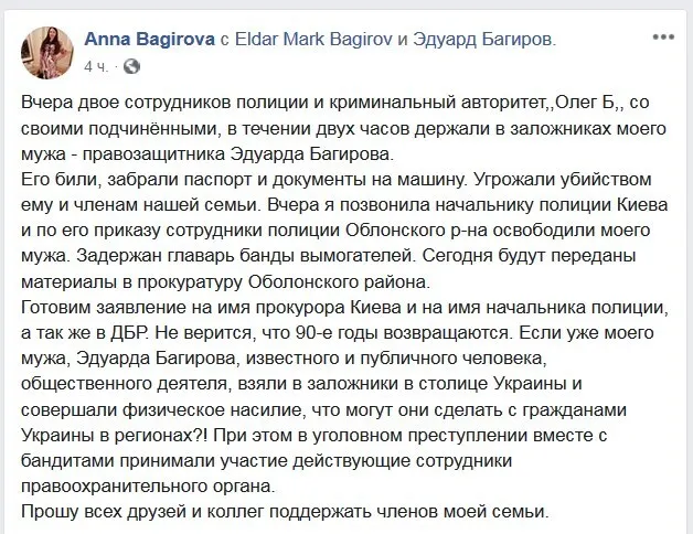 Впоследствии выяснится: конфликт возник из-за того, что правозащитник ранее официально занял у Олега Андреевича почти полмиллиона гривен якобы на расширение своего бизнеса по продаже чая в исправительные учреждения Государственной пенитенциарной службы в Украине. Однако, когда подошло время возвращать соответствующие средства, идеолог проекта под названием "Зона чая" пытался "включить заднюю", а когда "Бакинский" в присущей ему манере "напомнил" должнику о необходимости расплатиться - Багиров обратился с заявлением о преступлении.