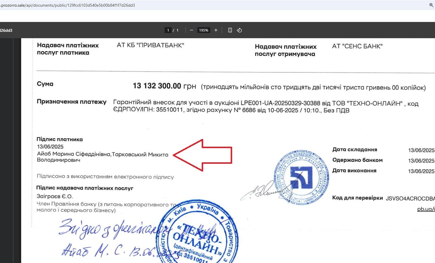 "Техно-Онлайн" принадлежало с марта 2025 года Марине Айаб, которая родом из Желтых Вод, а проживает под Киевом. В сентябре (когда "Техно-Онлайн" уже победило на аукционе на покупку "Укрбуда") её доля сократилась до 34%, а 66% перекупили братья Василий и Евгений Астионы через фирму из Днепра ООО "Биларт".