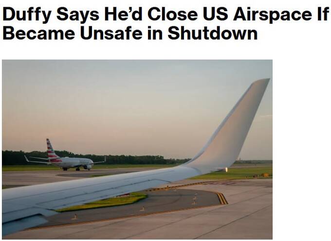 Министр транспорта США Шон Даффи предупредил, что воздушное пространство страны будет закрыто, если полёты станут опасными из-за последствий шатдауна.