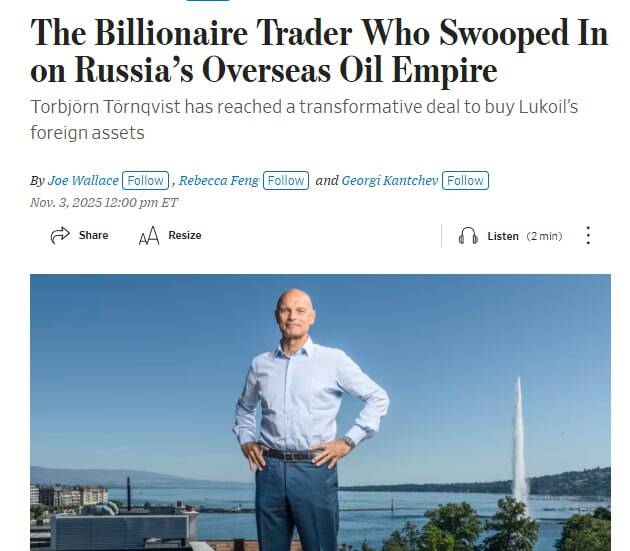 WSJ: Швейцарский миллиардер Тёрнквист выкупает зарубежные активы «Лукойла» на 20 миллиардов долларов