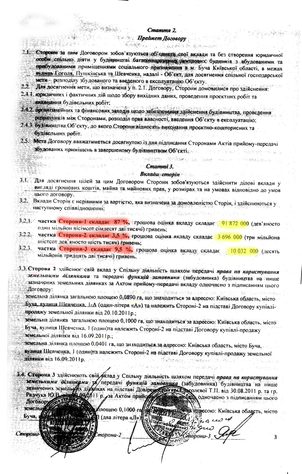 Відкритим та не розслідуваним до цього часу прокуратурою Київської області залишається питання – звідки у сімей Федорука та Карплюка, а також у пана Яцюка з’явилися десятки мільйонів гривень, які відображені у Договорі про спільну діяльність? А саме, грошовий вклад сім’ї Федорука складає майже 46 млн грн., сім’ї Карплюка майже 50 млн грн., а гр. Яцюка понад 10 млн грн. Якби прокуратура належним чином провела перевірку природи походження цих грошей, то отримала б підтвердження, що ці кошти мають статус “чорного налу”, та не відповідність фактичному їхньому доходу на той час. Також прокуратурою не дано оцінки діяльності Бучанському міському голові Федоруку на використання свого службового становища в корисних цілях з ознаками корупції, а саме в створенні сприятливих умов для сімейно-родинного будівельного бізнесу пана Федорука та легалізації (відмиванню) доходів отриманих злочинним шляхом. Тому я вважаю, що пан Федорук скоїв злочини, які підпадають під ст. 191, 209, 364 та 368 ККУ.
