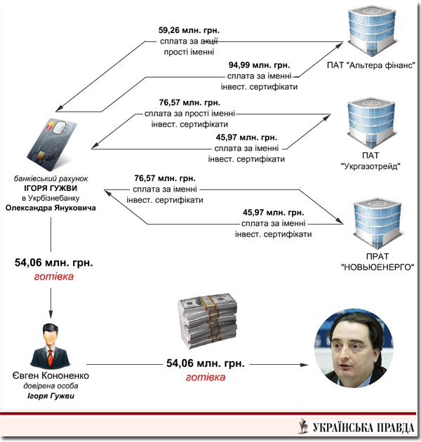 І найголовніше. В той самий період з того самого рахунку Ігоря Гужви його довіреною особою готівкою (!) було знято 54,06 млн. грн.