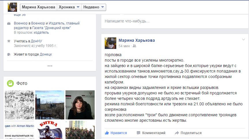 «Возле расположения «Трои» было движение. Сопротивление «троянцев» сломлено. Многие арестованы. Есть жертвы» — сообщила у себя в Фейсбуке журналистка одной из сепаратистских газет «Донецкий кряж» Марина Харькова.