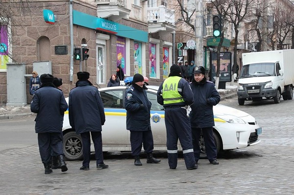 Працівники ДАІ перекрили рух в районі вул. Гоголя та Шевченка, до мітингуючих вийшов заступник голови ОДА Сергій Коваленко.