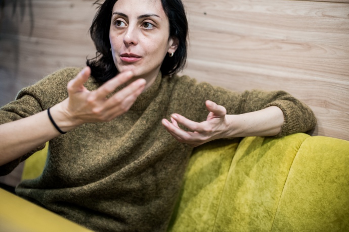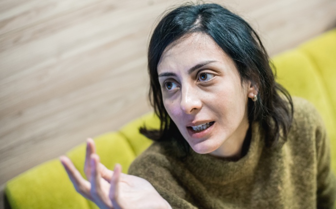 Деканоидзе соглашается на интервью практически сразу, но несколько раз переносит его, объясняя плотным графиком. В итоге мы встречаемся с ней в воскресный день в кафе "Желток" – Хатия говорит, что ей надоела официальная обстановка. Глава Нацполиции выглядит уставшей и слегка раздраженной. Впереди у нее встреча с руководителями аттестационных комиссий, и она то и дело поглядывает на часы.