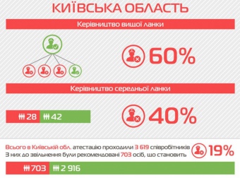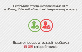 Область. Это 60% высшего руководства, среднего – 40% и 15% - рядовой состав. Всего в Киеве и области переаттестацию прошли около 13 000 сотрудников.