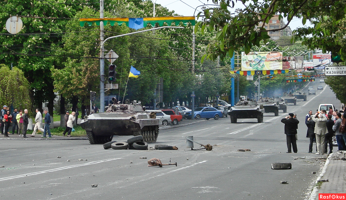 Начиная с 18 марта 2014 года пророссийские активисты «ДНР» несколько раз занимали здание городского совета. А вечером 13 апреля дошло и до прямого вооруженного столкновения, когда большая толпа, многие в которой были одеты в камуфляж и маски, совершила попытку штурма расположения военной части 3057 (Национальная гвардия Украины). После того как расположение стало забрасываться коктейлями Молотова караульные произвели предупредительные выстрелы, а затем открыли огонь по ногам нападавших. В результате противостояния трое «активистов» были убиты, а 16 ранены.