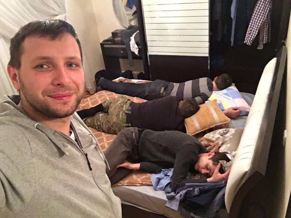 «У нас сегодня ну очень много гостей. Приехали с Майдана, чтобы согреться и немного отдохнуть. С нами еще был Влад Добуш. С кем-то прошли Майдан, с кем-то — войну, а кто-то уже смотрит на нас с небес. Благодарю Бога за то, что они все в моей жизни», — написал он.