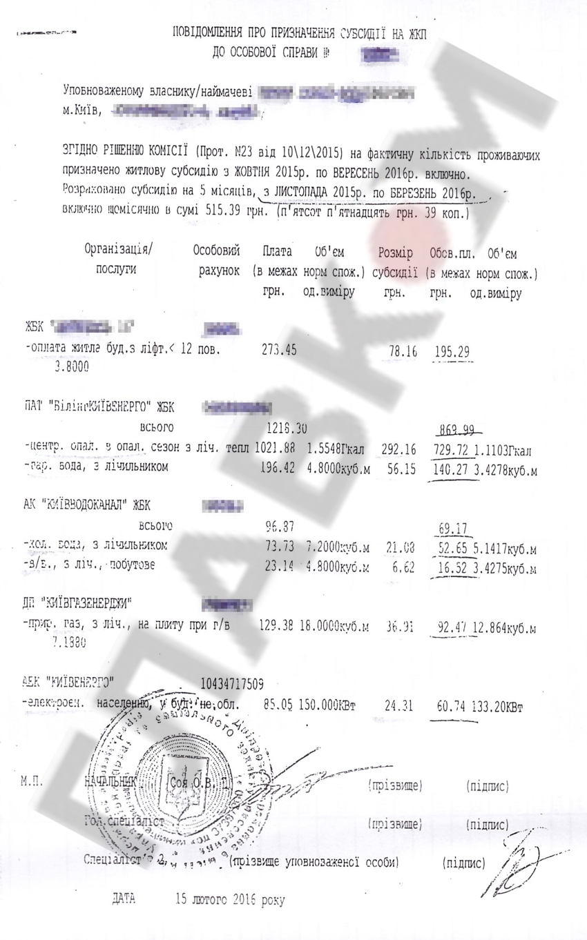Поспілкувавшись зі споживачами декількох столичних будинків, які оббивають пороги соціальних служб, виявилося, що багатьом з тих, кому ця допомога була призначена ще 6 чи 9 місяців тому, в дійсності отримали її лише один чи два рази. Адже в щомісячних платіжках в графі «Субсидія» написано 0,00 грн.