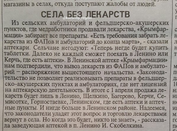 10. Умирать в крымских сёлах стало проще: Россия приказала изъять все лекарственные препараты из сельских амбулаторий и фельдшерско-акушерских пунктов.