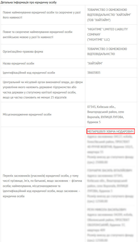 Однако самое интересное не это, а тот факт, что одним из основателей «ХАЙТАЙМа» числится сам Мепаришвили. По данным нашего собеседника, приближенного к руководству «Плесо», политик до сих пор владеет 50% ООО «ХАЙТАЙМ».